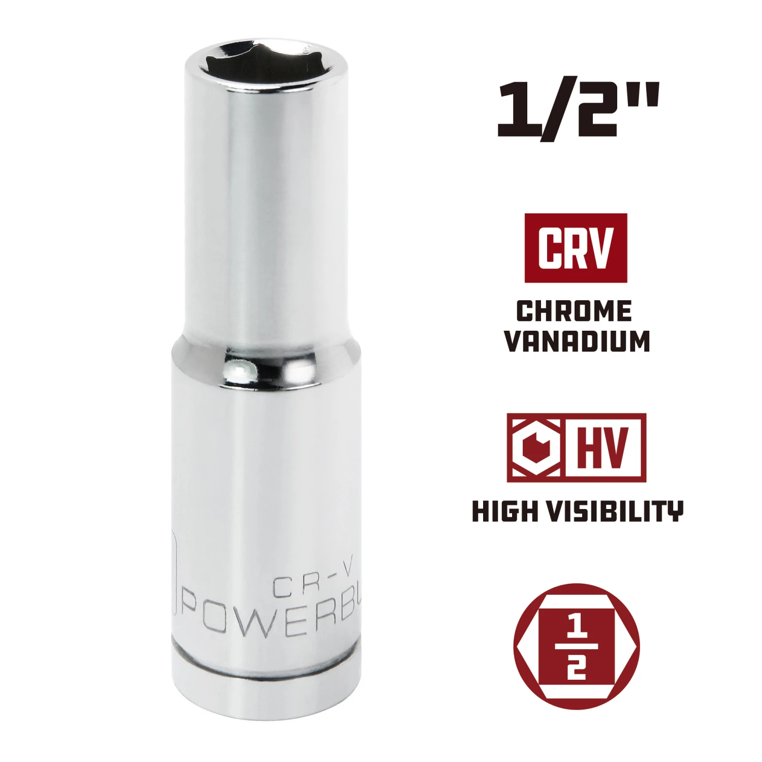 Powerbuilt Sockets are made from high grade Chrome Vanadium Steel and feature a mirror polished chrome plated finish for superior durability and corrosion resistance. Each Powerbuilt socket is cold forged, heat treated and produced with precision tolerances.