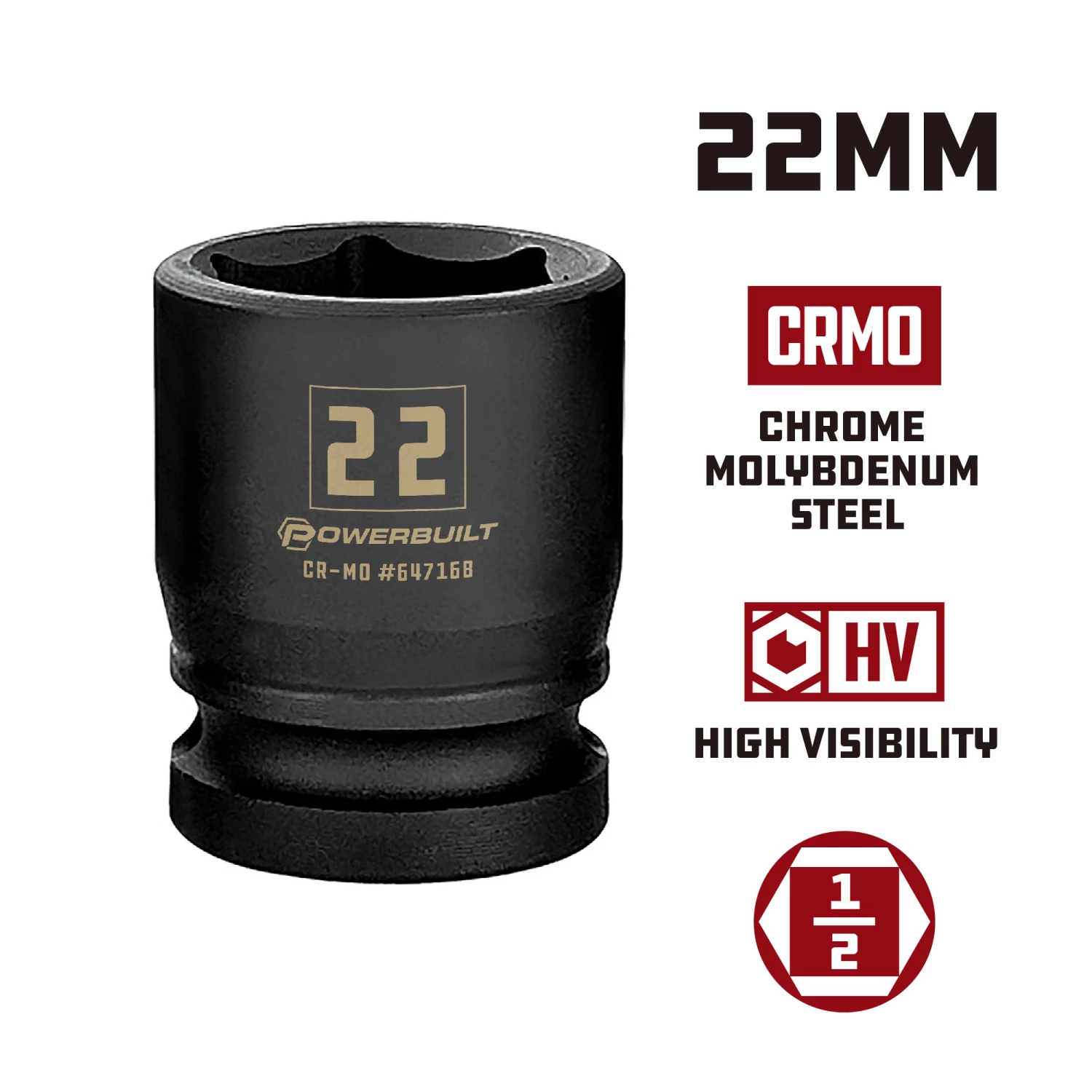 Powerbuilt 1/2 Inch Drive x 22 MM 6 Point Impact Socket – 647168