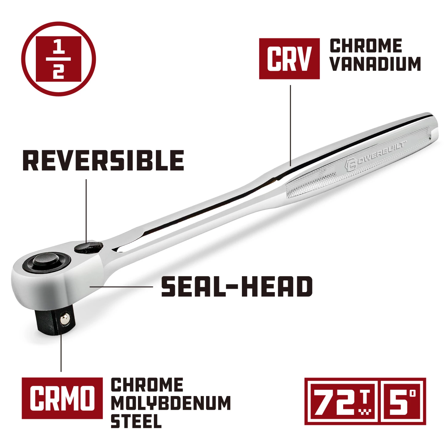 Powerbuilt 1/2 Inch Drive72 Tooth Pro Tech Ratchet with Contour Handle – 649970