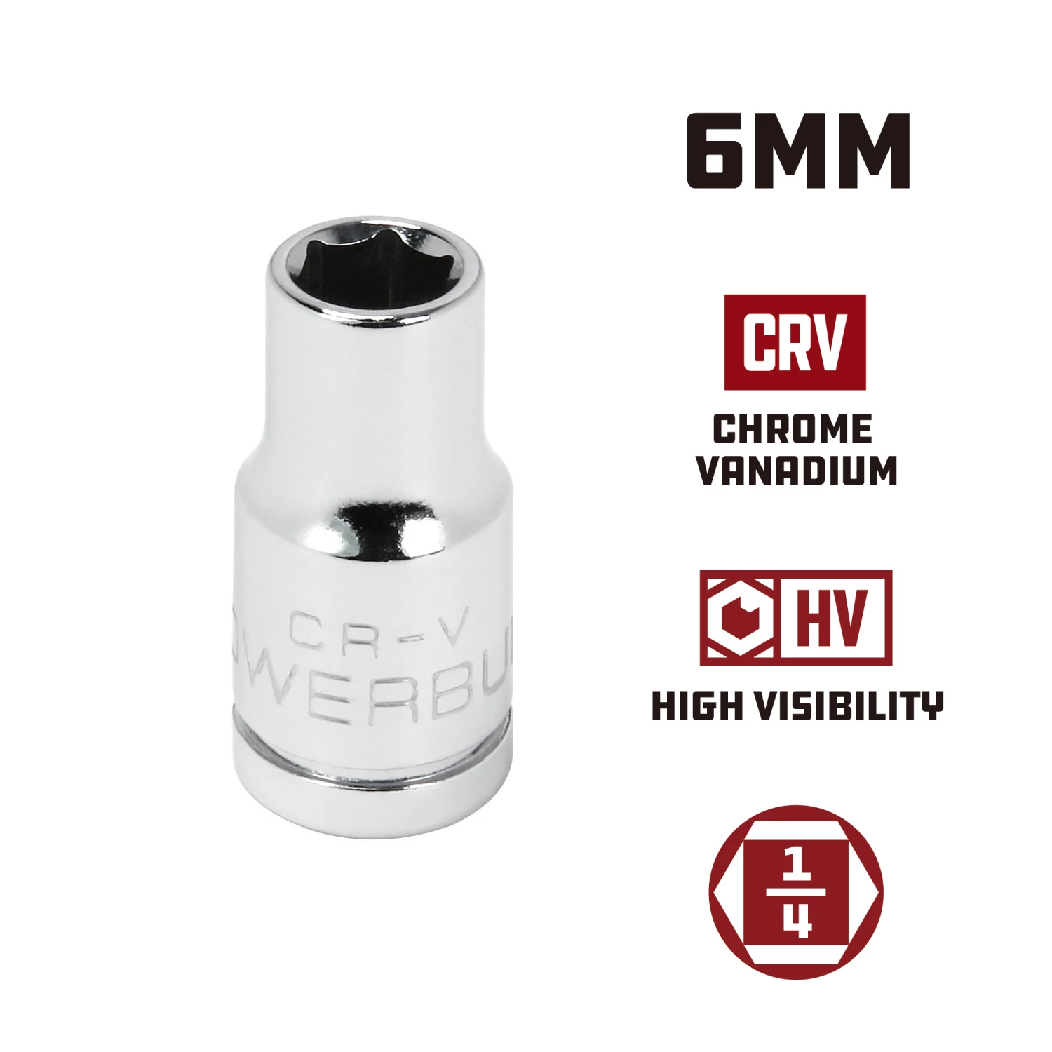 Powerbuilt 1/4 Inch Drive x 6 MM 6 Point Shallow Socket – 648283