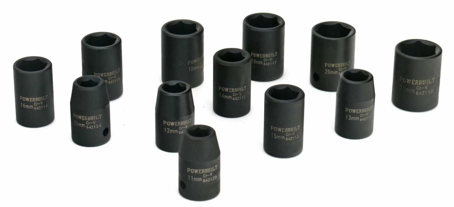 Powerbuilt 12 pc 1/2″ Drive Metric Impact Socket Set – 642365