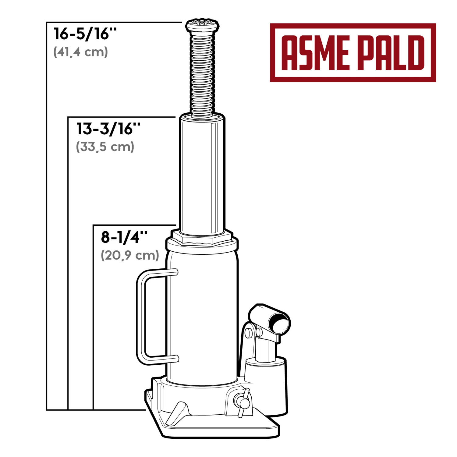 This tough 12-ton bottle jack has a strong forged iron saddle with a lifting range of 8-5/8 to 16-1/4 inches. The stable oversized cast iron base helps prevent tipping. A dependable cast iron handle socket adds strength and durability. Once your repairs are done, turn the precision pin type release valve to lower.