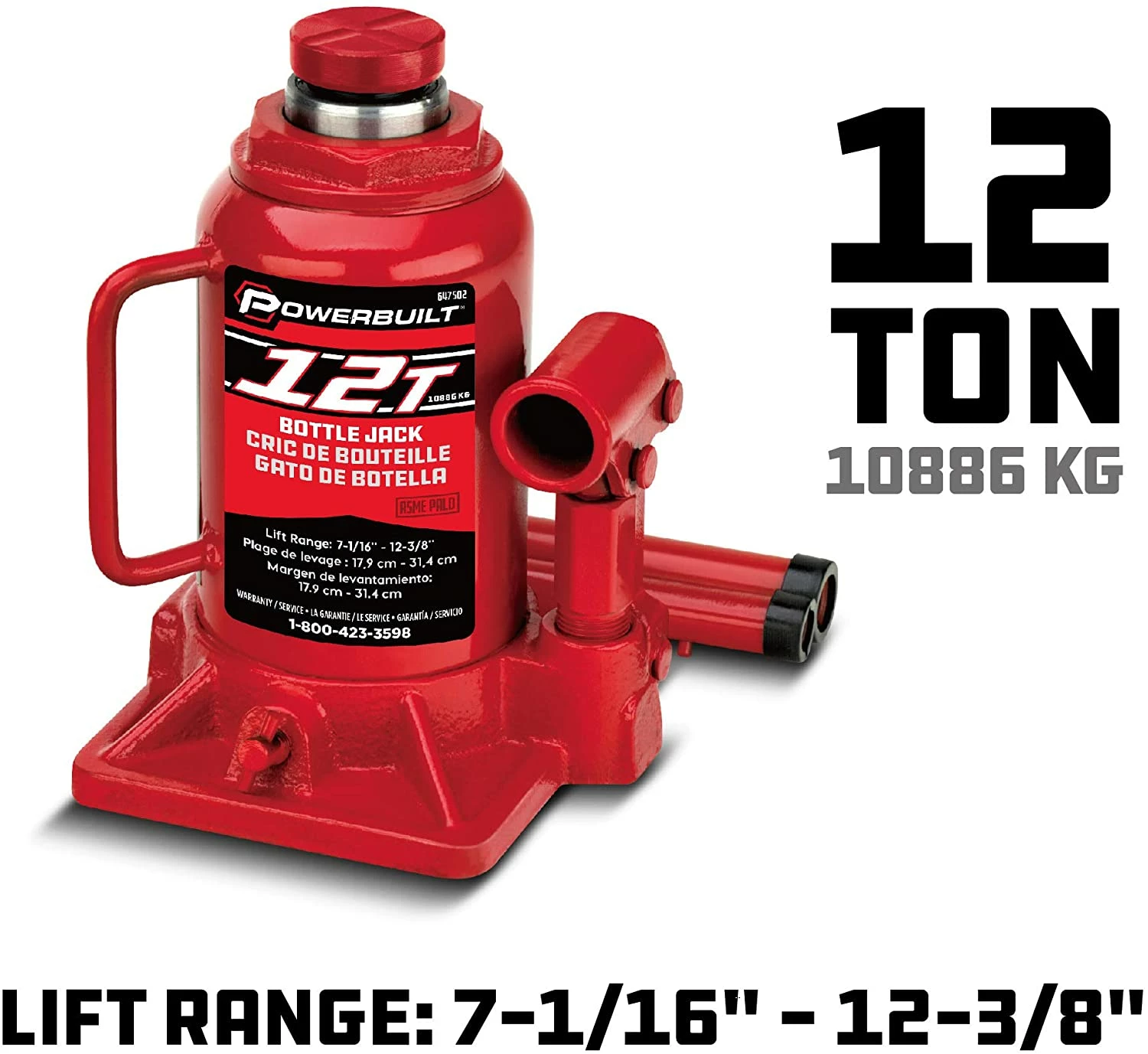 Got a vehicle that’s a little too heavy for your floor jack? Have no fear, the 12-ton shorty bottle jack is here. This tough bottle jack has a strong forged iron saddle with a lifting range of 7-1/16 in. to 12-3/8 in.