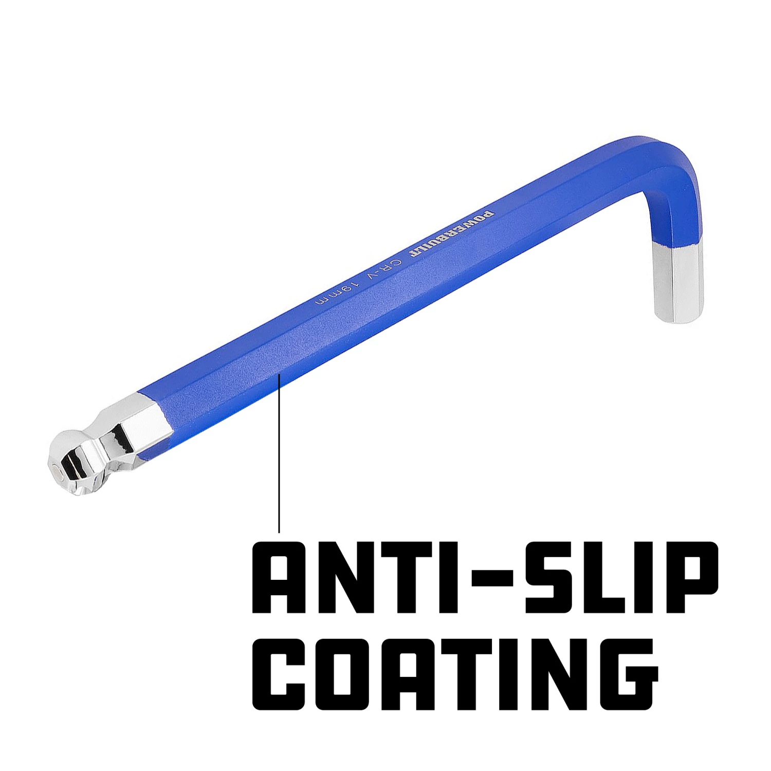 The Powerbuilt 13 Piece Metric Long Arm Magnetic Hex Key Wrench Set is a top-quality key wrench set offering strength, precision, and organization. Each wrench is constructed of premium chrome vanadium steel for durability and precise fit into hex head fasteners. For added versatility, wrenches also feature ball ends that drive fasteners from angles up to 25 degrees from vertical and helpful magnetic ends for retaining loose fasteners. The nonslip powder coating creates a better grip gives added protection and color-coding. The longer arms have a more extended reach and generate more torque than standard length key wrenches. Set includes common wrench sizes 2mm, 2.5mm, 3mm, 4mm, 5mm, 6mm, 7mm, 8mm, 10mm, 12mm, 14mm, 17mm, and 19mm. The 13 key wrenches are organized with size markings inside the fold-out plastic carrier you can toss in a toolbox. Powerbuilt products meet or exceed ANSI standards. Dependable enough to last a lifetime.
