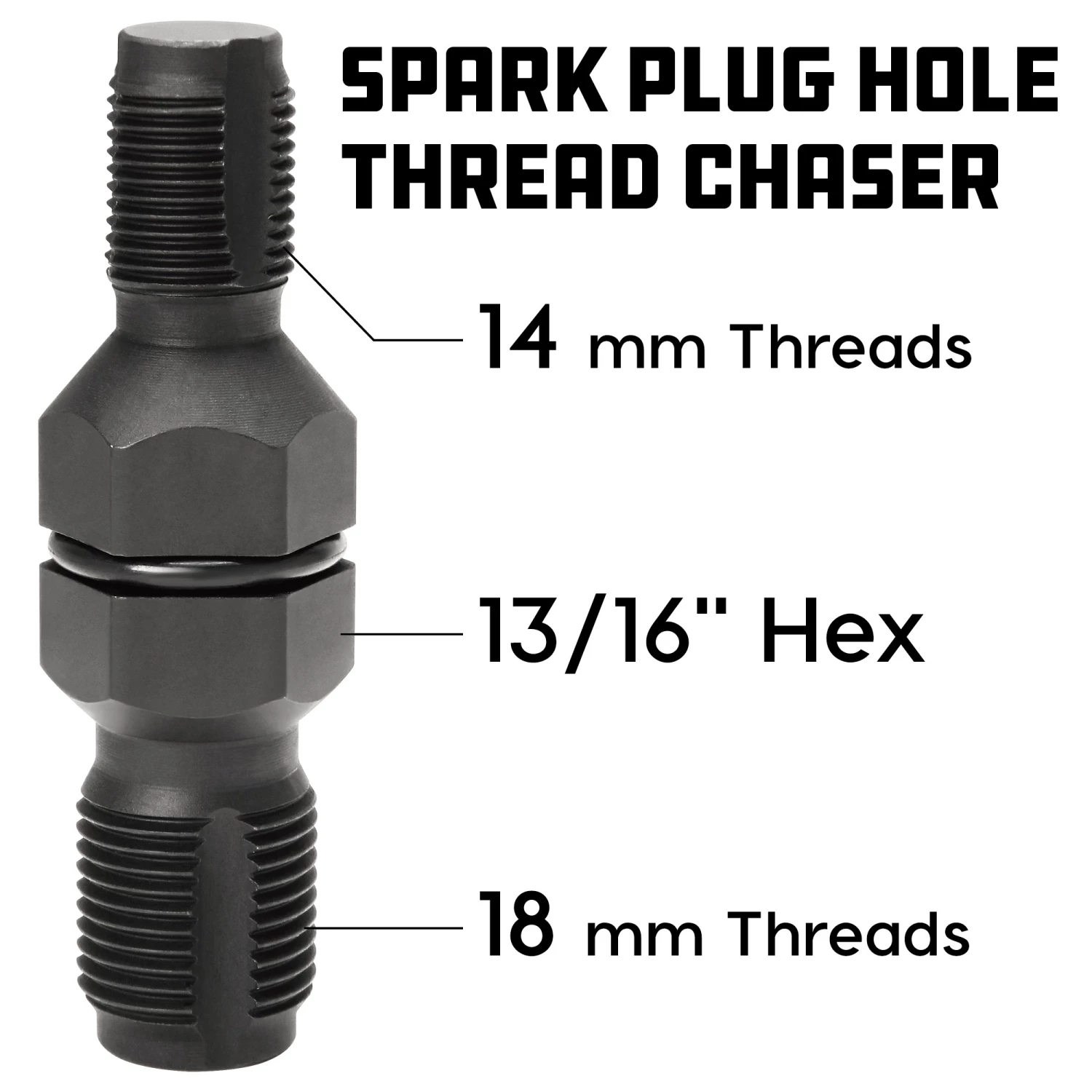 For repairing damaged or dirty threads in spark plug holes. 14mm and 18mm threads. Rubber O-ring holds tool firmly in place in 13/16-in socket when in use. Meets or exceeds ANSI standards. Lifetime warranty