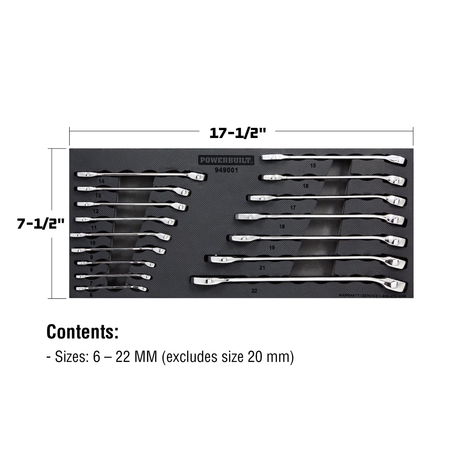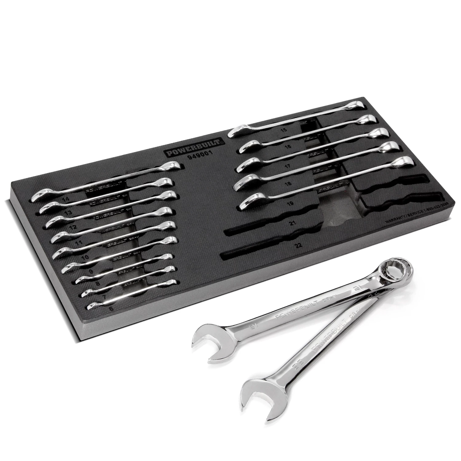 Premium tools and an organized workspace are the mark of professionals and serious home do it yourselfers. The Powerbuilt 16 Piece Pro Tech Metric Combination Wrench Set provides both. This 16 piece set is a professional level wrench set and tray designed to drop into any standard toolbox drawer. The combination wrenches have chamfered edges on both open and box ends for easier mating and reducing slippage on fasteners. The box end also features Z-Drive™ broaching for a stronger grip on fasteners. All wrenches are made of premium Chrome Vanadium steel with a mirror polished chrome plated finish. Wrench set comes in a custom laser-cut EVA foam tray that fits in box drawer to keep tools organized and secure. Powerbuilt Professional Technician combination wrenches are built to meet or exceed ANSI specifications for length, torque and hardness.