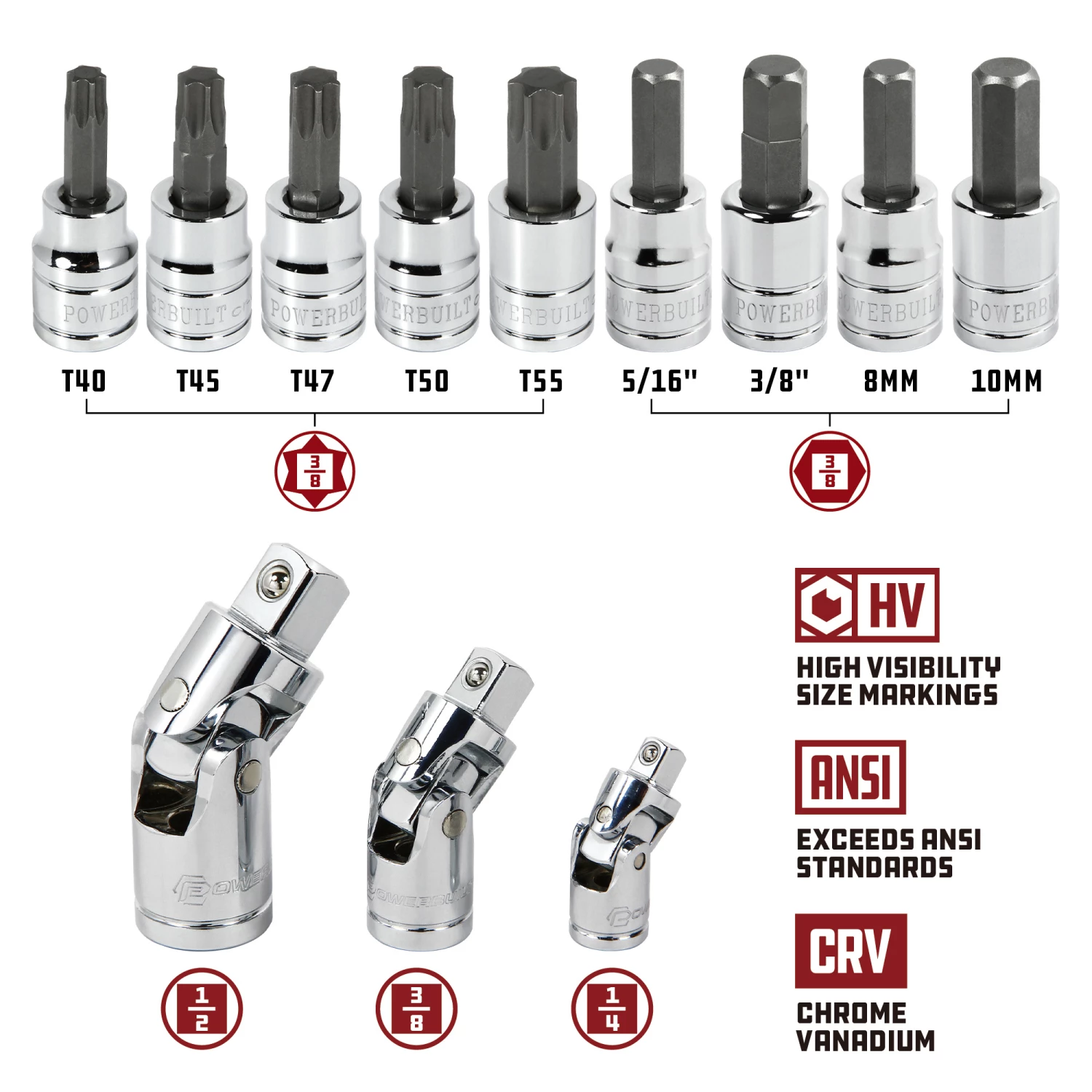The Powerbuilt 200 Piece Master Mechanic’s Service Tool Set offers a broad tool selection and the coverage needed for the majority of service jobs in the garage, house or on the jobsite. It includes the most popular ¼”, 3/8″ and 1/2″ inch drive sockets in shallow and deep styles in both SAE and metric sizes. Included in this set is our 90-tooth sealed head pro grade ratchets that require just a 4-degree swing to engage, making them ideal for the tightest spaces. Built from strong chrome vanadium steel with a beautiful mirror finish, the 90-tooth ratchet features an ergonomic full-length handle, molded finger grooves, and a fully sealed head that keeps lubricant in, and debris out, for longer service intervals. Strong as well as beautiful, Powerbuilt sockets are constructed of premium chrome vanadium steel and feature stamped high-visibility size markings, our innovative Z-Drive design and precision chamfered openings make it easier to slide the sockets over fasteners, while the punched center holes add working space for taller nut and bolt stock.