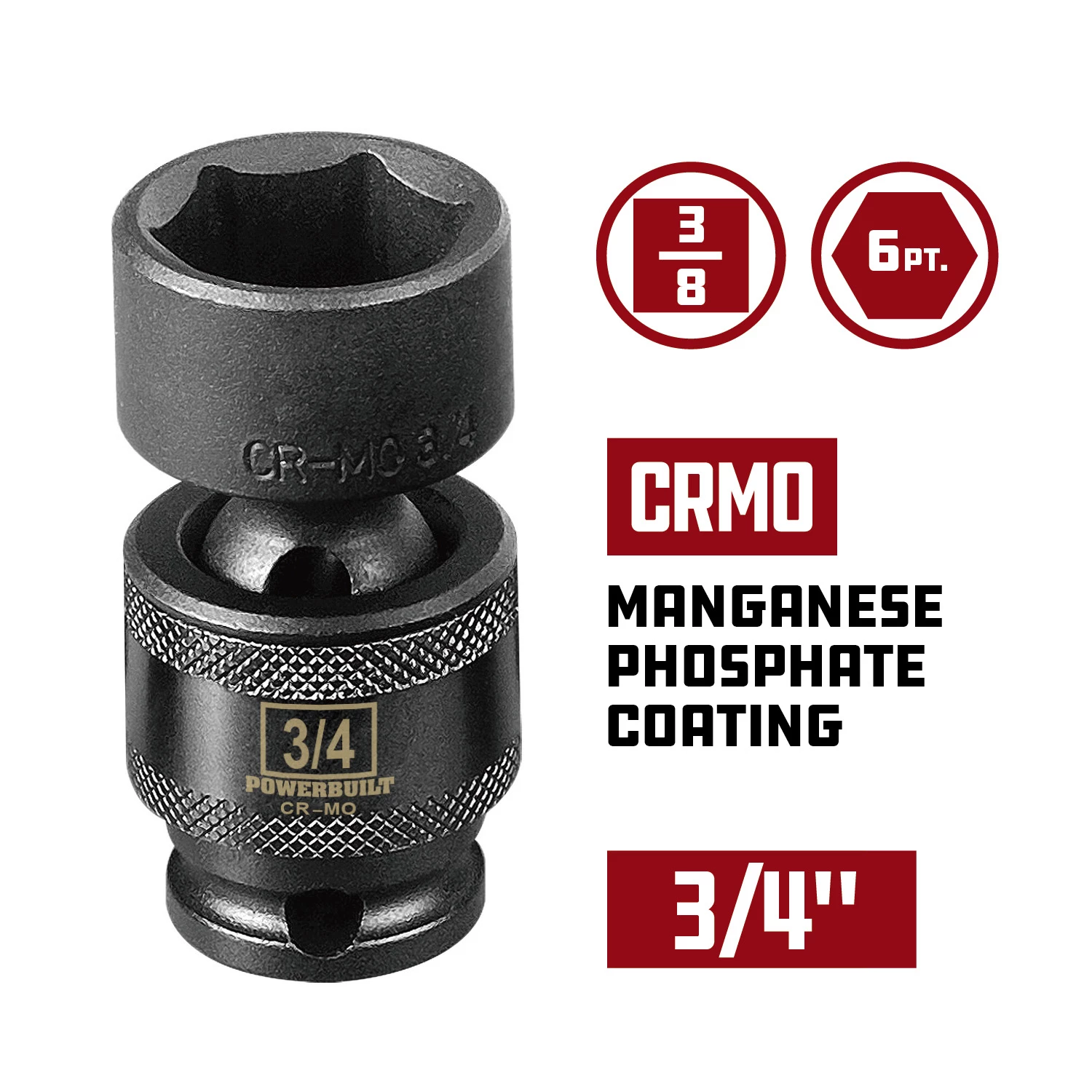 - 3/8″ drive 3/4″ standard length 6 point socket