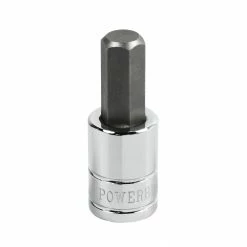 Powerbuilt hex bit sockets feature sockets that use a 2 piece press-fit design for strength and durability. Socket bodies are constructed of Chrome Vanadium Steel and mated to S-2 industrial-grade steel bits. Precision ground for a tight fit on cap screws and other internal hex fasteners. Dual grease rings offer better grip and easier handling with greasy hands.