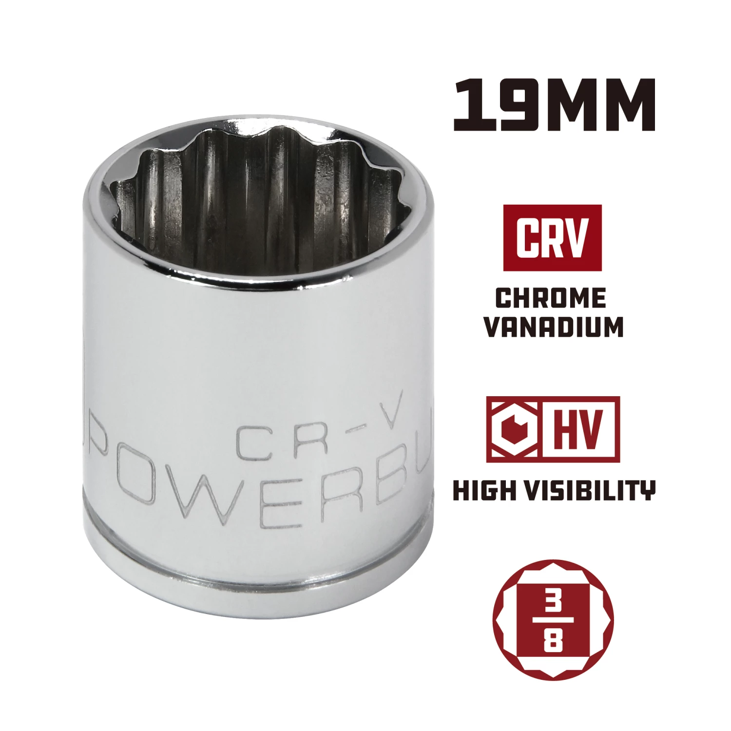 Powerbuilt 3/8 Inch Drive x 19 MM 12 Point Shallow Socket – 641024