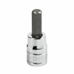 Powerbuilt hex bit sockets feature sockets that use a 2 piece press-fit design for strength and durability. Socket bodies are constructed of Chrome Vanadium Steel and mated to S-2 industrial-grade steel bits. Precision ground for a tight fit on cap screws and other internal hex fasteners. Dual grease rings offer better grip and easier handling with greasy hands.
