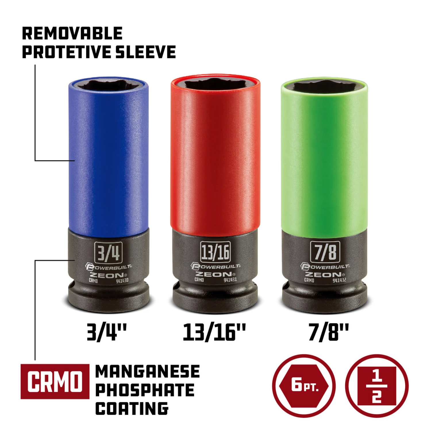 - Comes with 0.5″ drive SAE lug nut sockets, measuring 3/4″, 13/16″ and 7/8″
