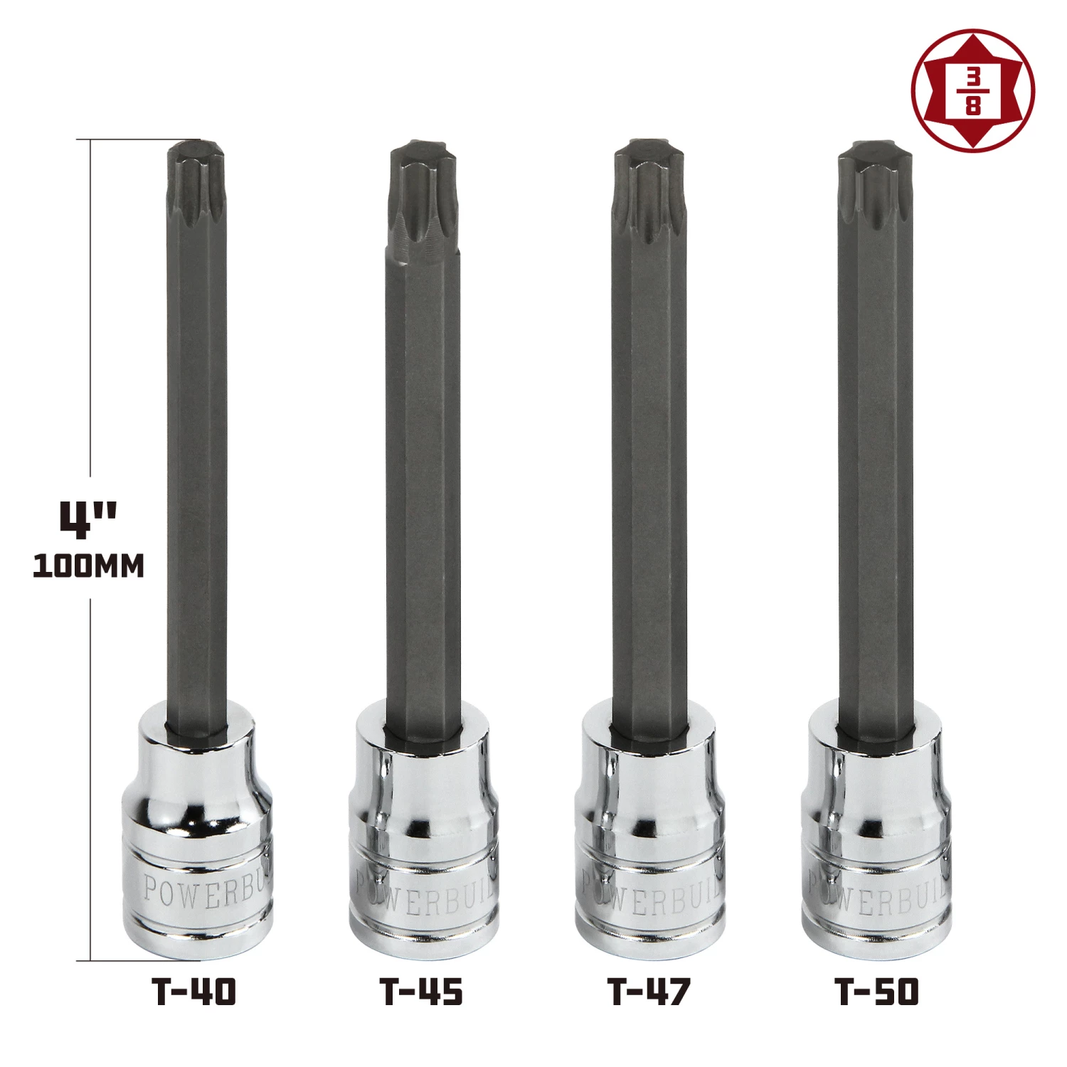 Powerbuilt 4 Pc. 3/8 in. Drive 4 in. Long Reach Torx Bit Socket Set – 647058