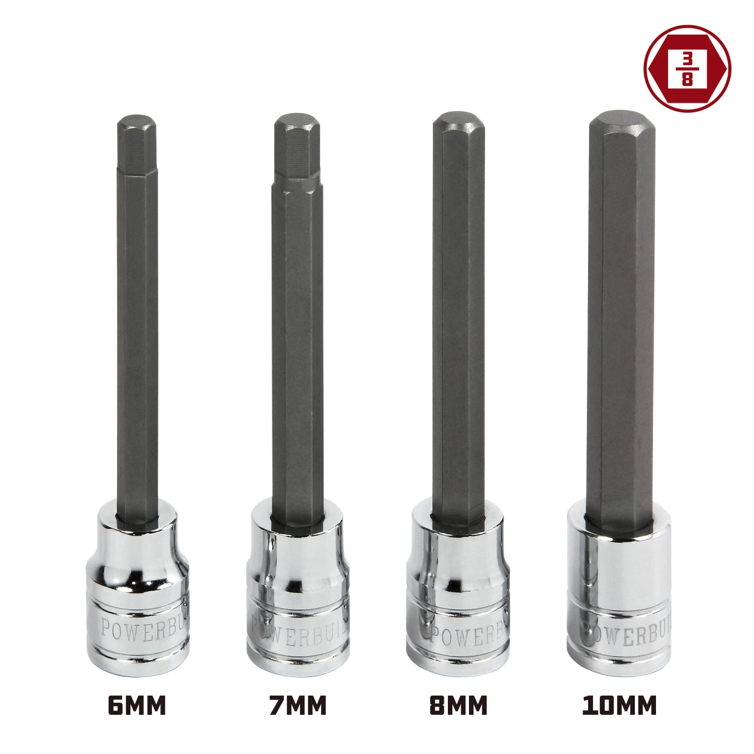 Powerbuilt 4 Pc. 3/8-Inch Drive Metric Long Reach Hex Bit Socket Set – 647060
