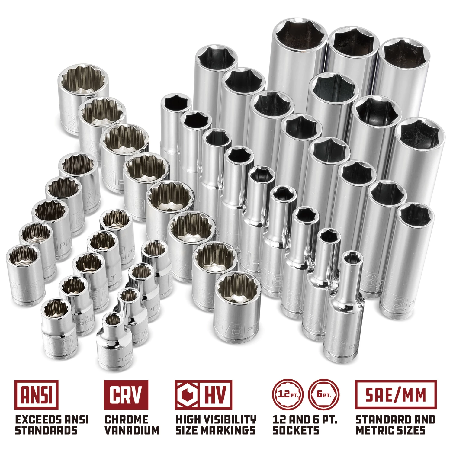 The Powerbuilt 47 Piece 3/8″ Drive SAE and Metric Mechanic’s Tool Socket Set is a great starter set for pros and serious home mechanics. It offers great coverage of the most popular 3/8 inch drive sockets in shallow and deep styles in both SAE and metric sizes. Strong as well as beautiful, Powerbuilt sockets are constructed of premium chrome vanadium steel. They feature jumbo high-visibility size markings that are forged right into each socket sidewall so they’ll never fade or wear off. Built of strong chrome vanadium steel with a beautiful mirror finish, the 72-tooth ratchet features a stylish full-length spiral-machined handle that keeps your grip from slipping while you work. The fully sealed head keeps lubricant in and debris out for longer service intervals. Dependable Powerbuilt tools meet or exceed ANSI standards and have a lifetime warranty, all at affordable prices.