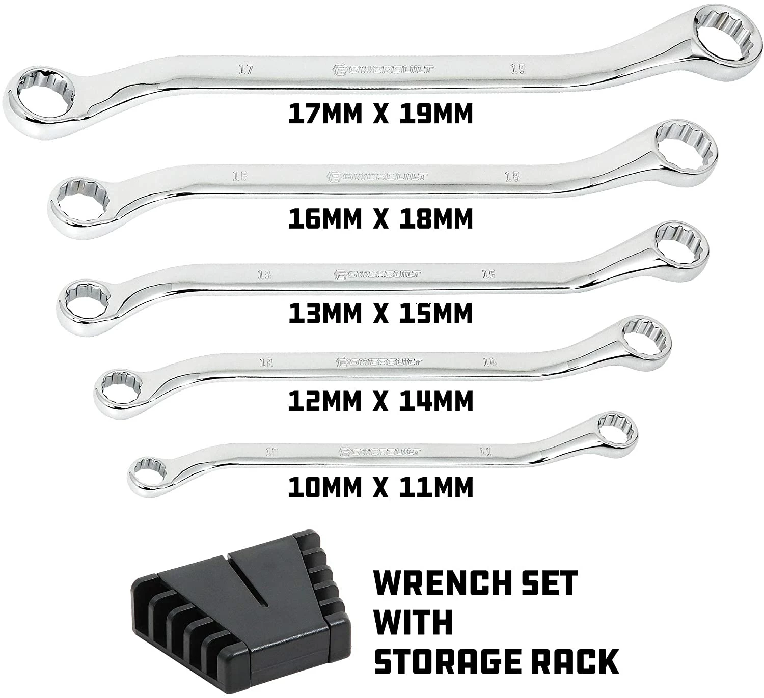 Set includes Metric Offset Box Wrenches: 10 x11mm, 12 x 14mm, 13 x 15mm, 16 x 18mm, 17x19mm