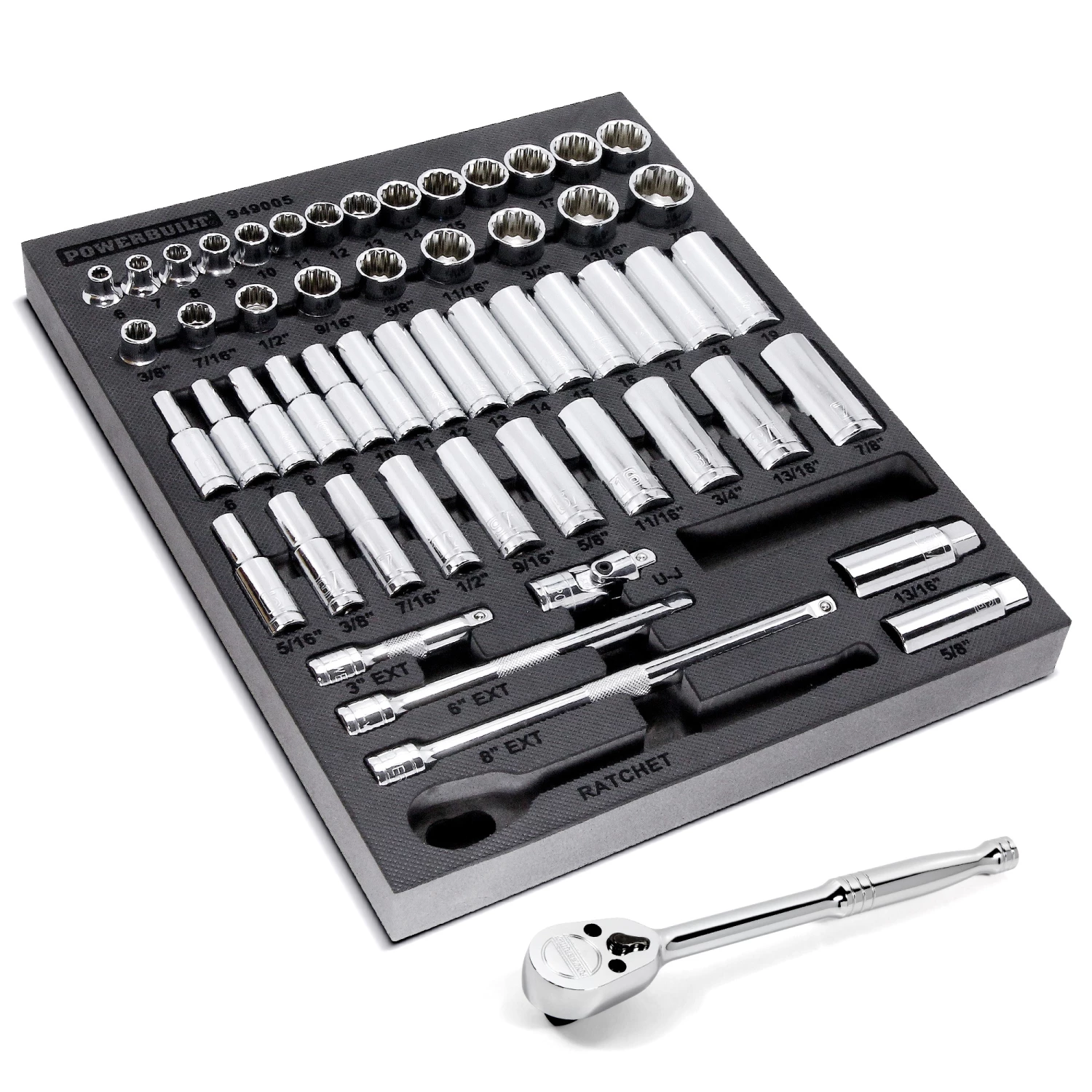 Powerbuilt 54 Piece Pro Tech 3/8 in. Dr. SAE & Metric Socket Set – 949005