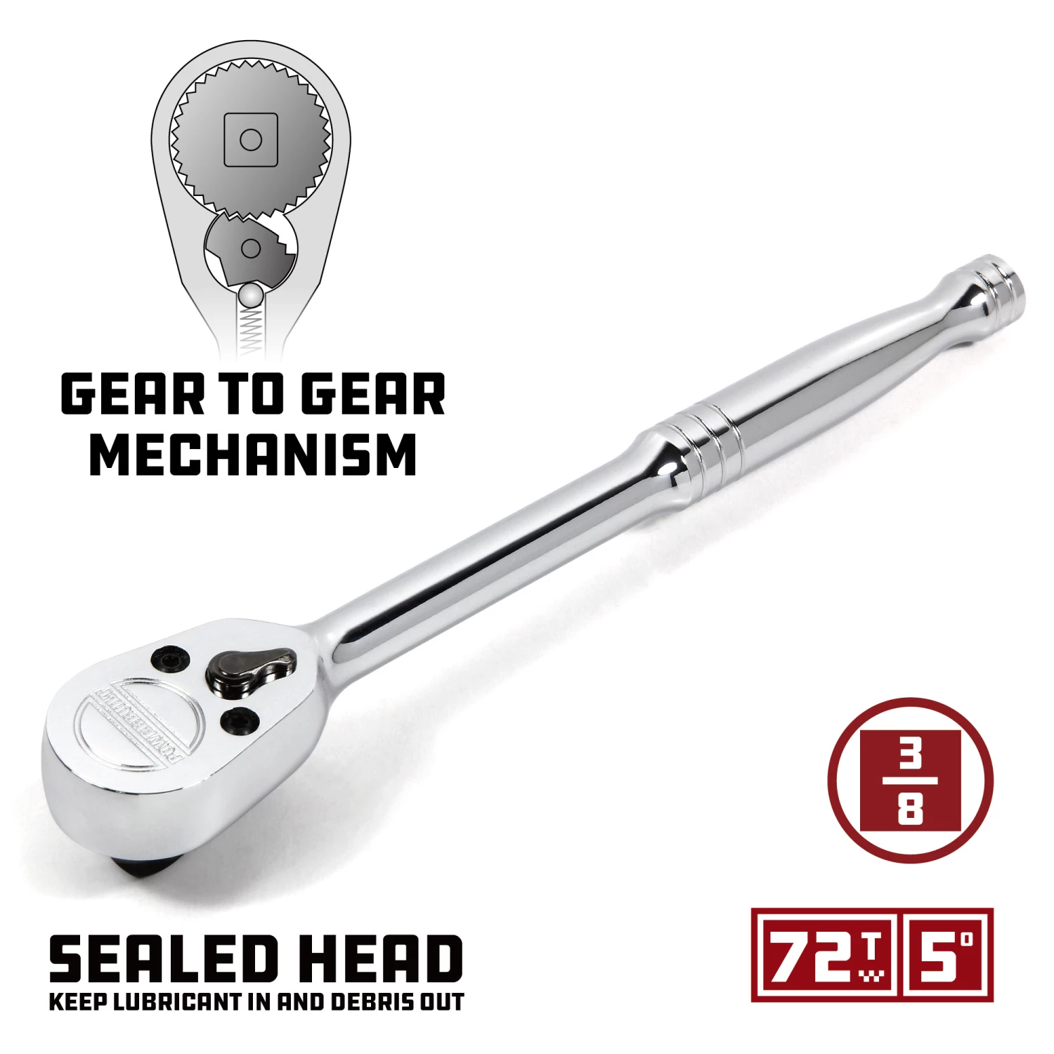 Powerbuilt Professional Technician socket sets are built to meet or exceed ANSI specifications. All sockets, socket accessories and drive tools are constructed of high-quality Chrome Vanadium (CR-V) steel with mirror polished chrome plated finish. Powerbuilt sockets are the heart of these sets. Their sleek chrome finish is enhanced with an easy to read size marking that is forged into the metal. Because it’s forged into the socket wall, the marking won’t rust or wear off – ever. Beauty is more than skin-deep though. Inside Powerbuilt sockets you’ll find precision chamfered hex faces that make it easier to guide them onto fasteners. And the exclusive Z-Drive hex pattern grabs and turns the flat surfaces of those fasteners to reduce round-off and slipping. Finally, the center holes are punched through to add a bit more clearance for taller nuts and bolts. Each socket is mirror polished and chrome plated for the highest degree of durability and corrosion resistance. Powerful, precise and stylish, Powerbuilt socket sets offer the look, feel and performance hard-working Techs deserve.