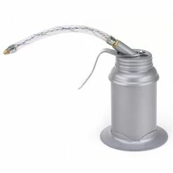 Apply oil exactly where needed with the Powerbuilt Pistol-Style 6-ounce Oil Can. Its 5-inch flexible braided hose delivers oil to hard-to-reach spots. A convenient pistol-style handle is comfortable and easy to operate. The oil can features a pump with two ball valves for a larger oil delivery volume. The base is extra wide for added stability. Perfect for serious home users and mechanics alike. This durable oil can offers a sleek powder coat finish. Every package comes with professionally written instructions and photos to take you step by step through proper tool usage. The Poowerbuilt 6-ounce oil can meet or exceed ANSI standards and have a lifetime warranty.
