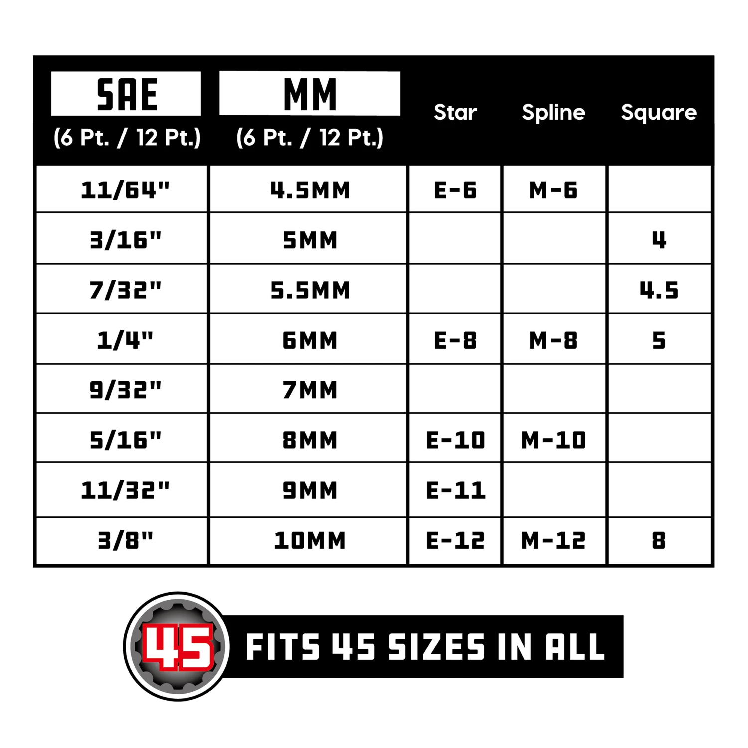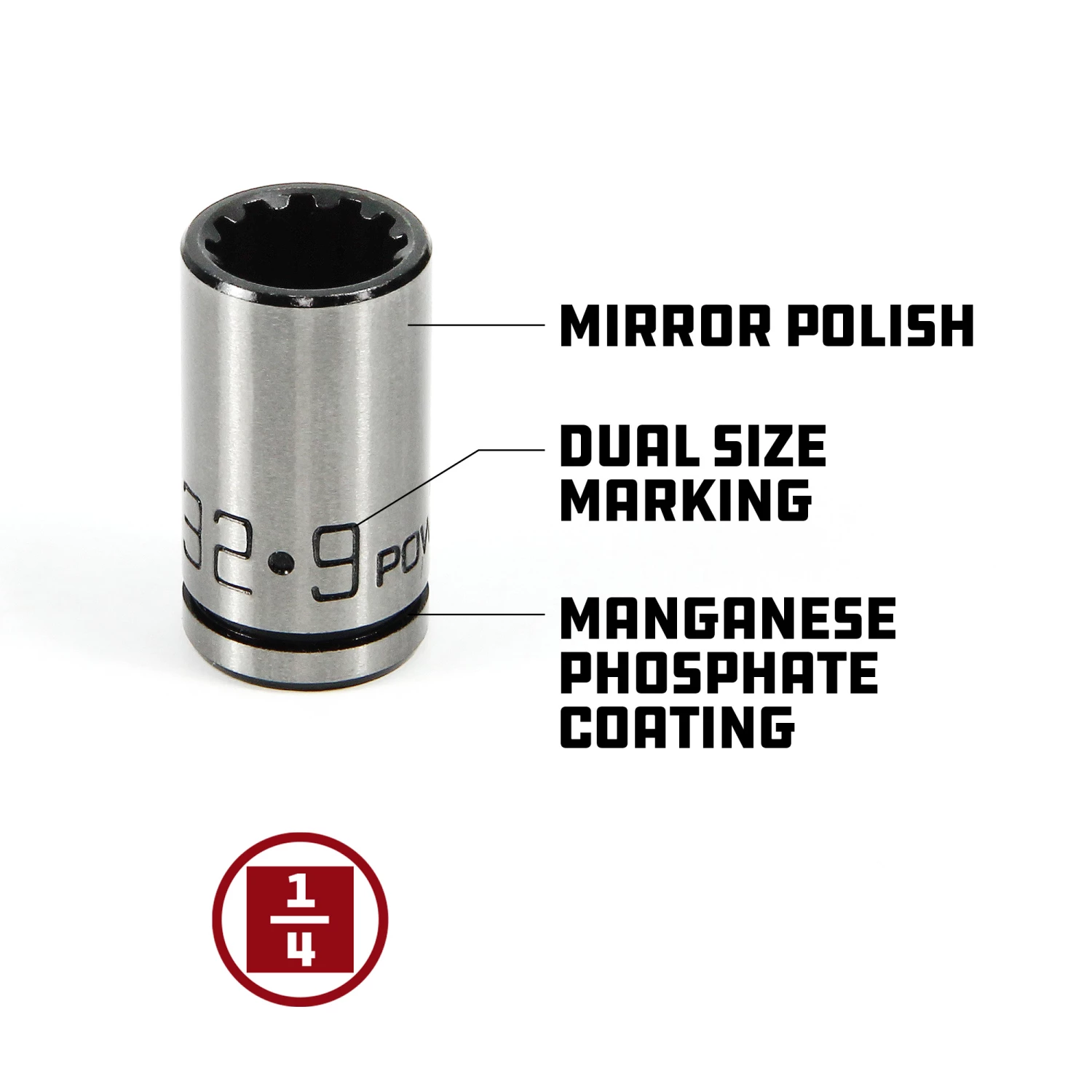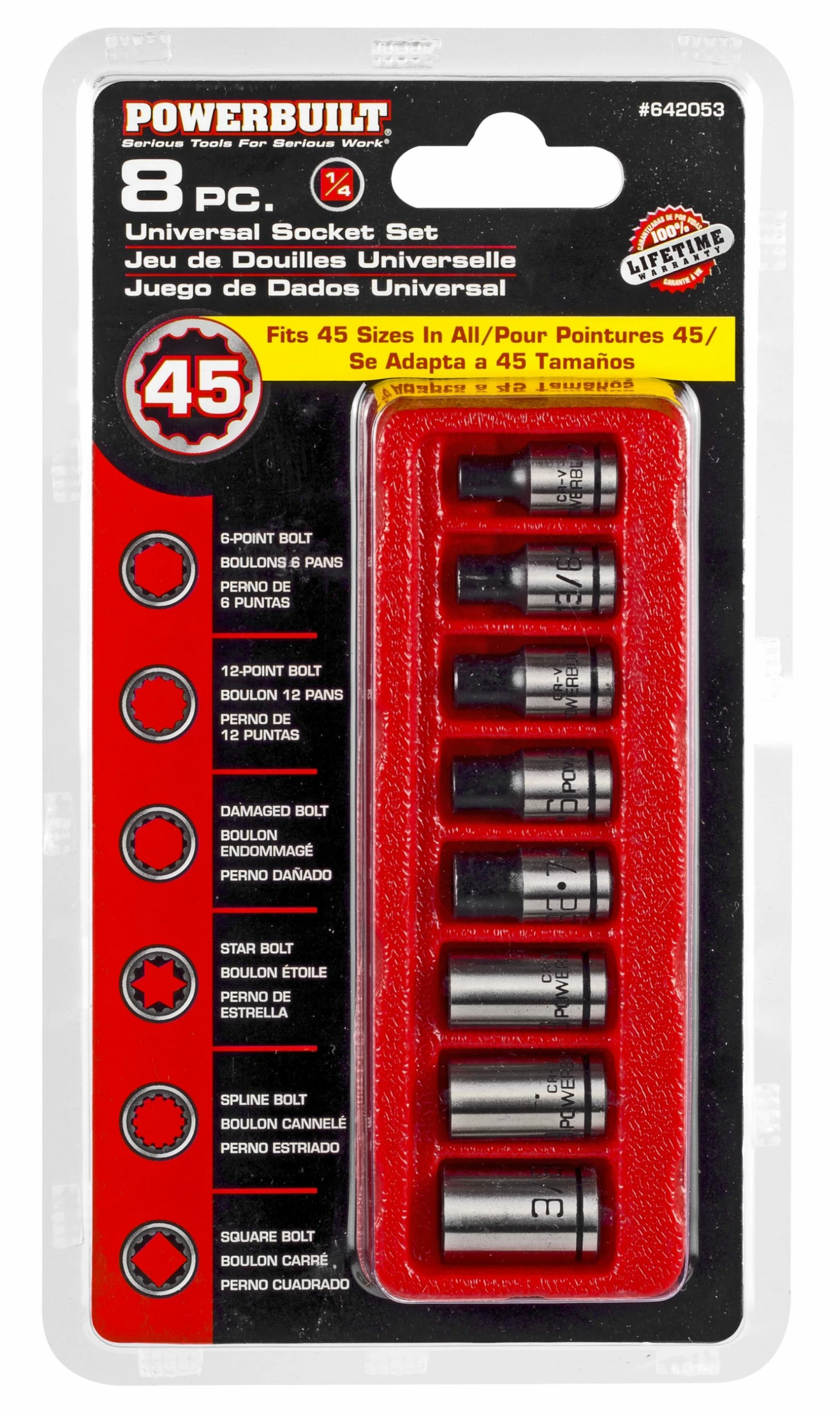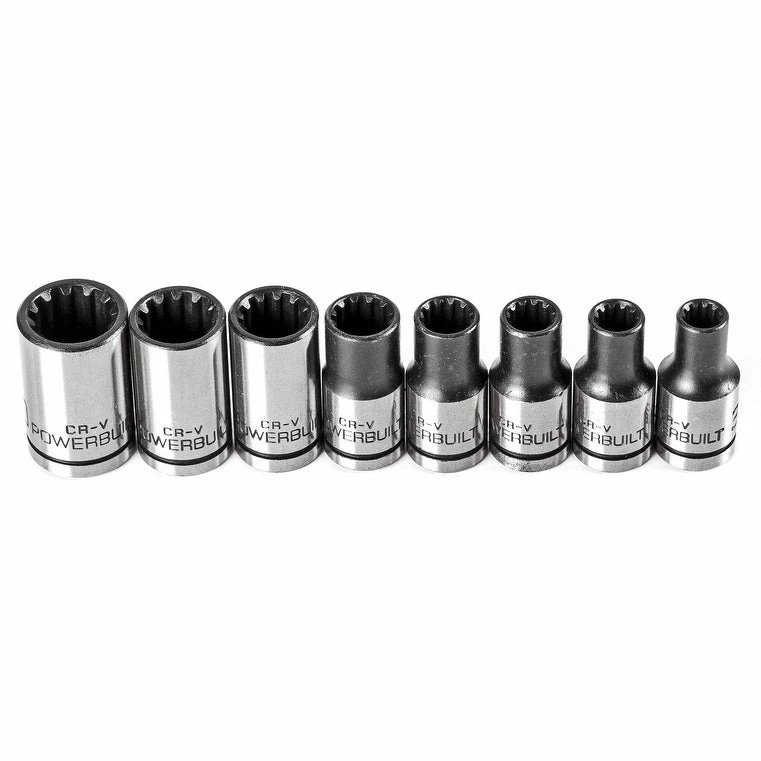 Powerbuilt socket sets will meet your needs for many applications and are a versatile addition to any toolbox or shop. The 8 Piece 1/4 Inch Drive Universal Socket Set with Tray is dependable and affordable, with the innovative Z-Drive design allowing 8 sockets to fit 45 different fasteners. Sockets are manufactured from Vanadium steel and chrome-plated, making them strong and reliable tools. The sets feature easy-to-read size markings. Powerbuilt’s innovative Z-Drive design helps the sockets grip fasteners, chamfered openings, and more to make your projects easier. Powerbuilt socket sets are offered in separate SAE and metric sets and combined sets.