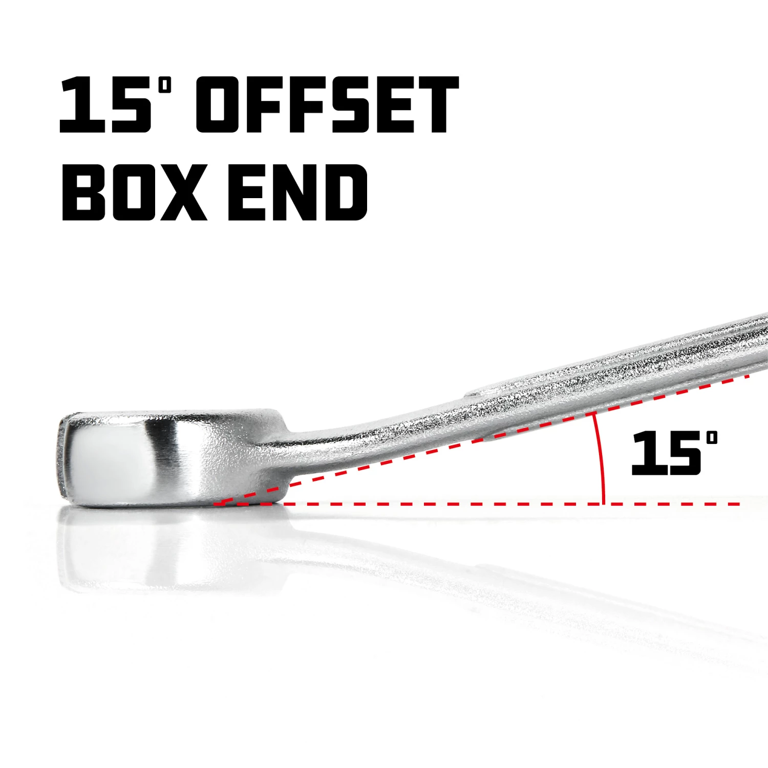 Powerbuilt Flare Nut Wrenches are made from Chrome Vanadium steel for added durability. The double open ends provide a 6 point connection for many common hose fittings, brass fittings and more. The flare nut design allows these wrenches to be used on hoses and tubing to easily side onto these types of fittings commonly found on automobile, HVAC and other similar applications. Perfect for automotive line fittings and plumbing applications.