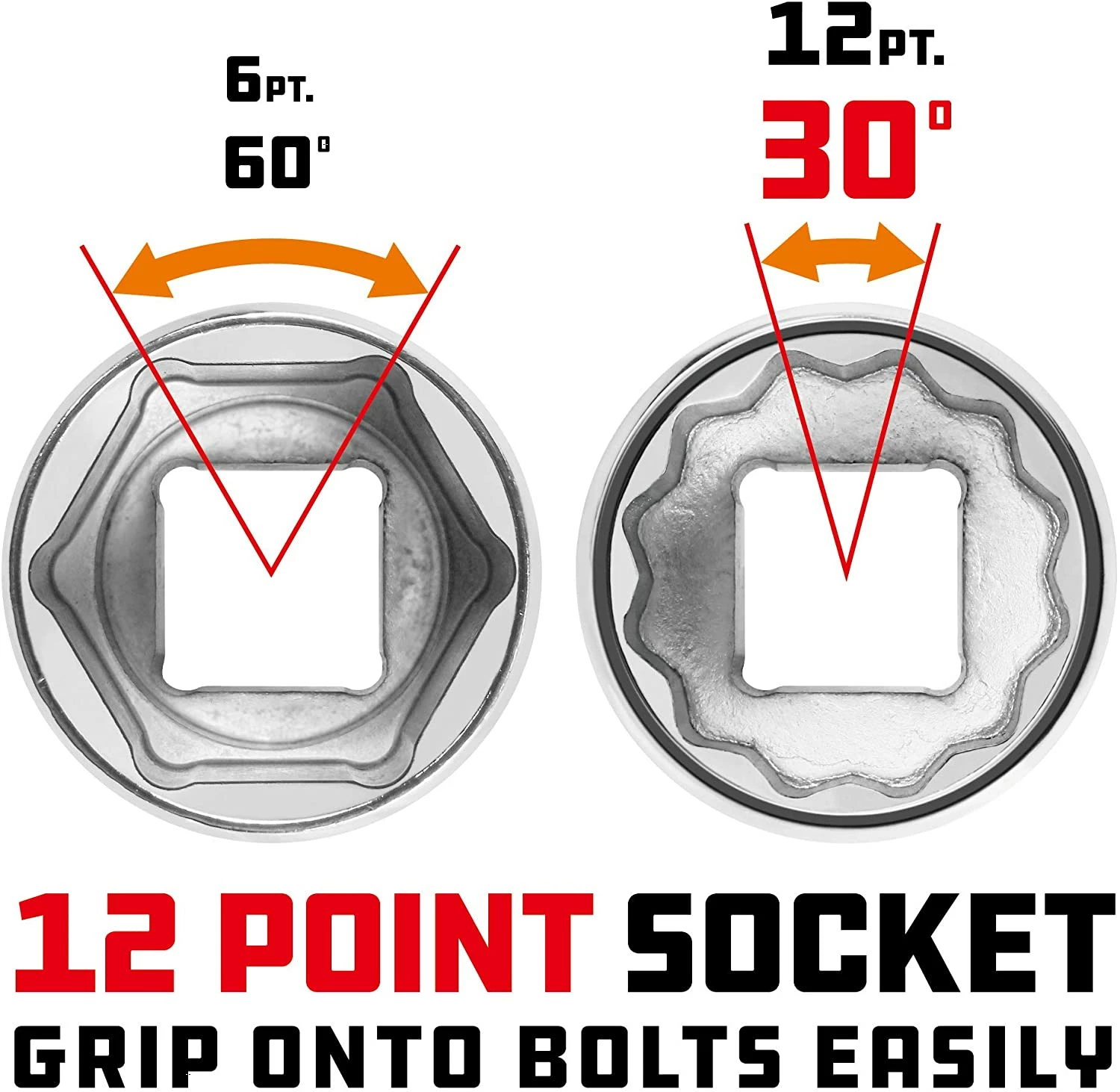 Beauty is more than skin-deep though. Inside Powerbuilt sockets you’ll find precision chamfered 12 Point faces that make it easier to guide them onto fasteners.