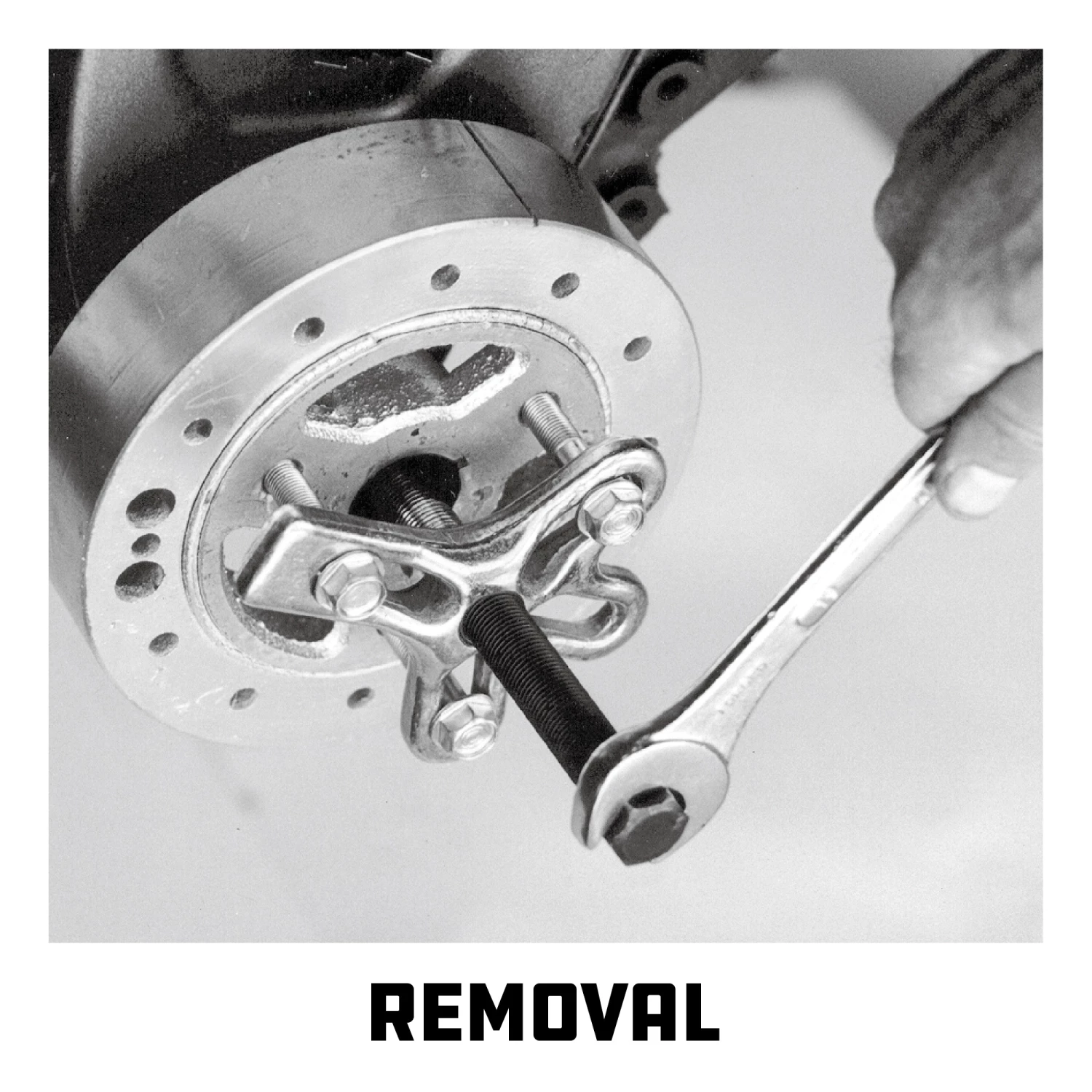 For removing and installing harmonic balancers that have threaded holes. For removing balancers, kit contains 2/3 combo yoke, 5/8-in x 5/8-in national fine center screw, center point piece, and the following bolt pairs: 3/8-in-16×4-in national coarse, 3/8-in-24×2-in national fine, 5/16-in-18×2-in national coarse, M8-1.25x80mm and M10-1.5x50mm. For installing balancers, kit contains 7/8-inx4-1/4-in national fine center screw, thrust bearing, forcing nut, jaw nut and the following adapters: M12-1.5, M14-1.5, M16-2.0, 7/16-in- 20, 1/2-in-20, 9/16-in-18, 3/4-in-16. Storage case complete with laminated instruction sheets with photos. Meets or exceeds ANSI standards. Lifetime warranty.