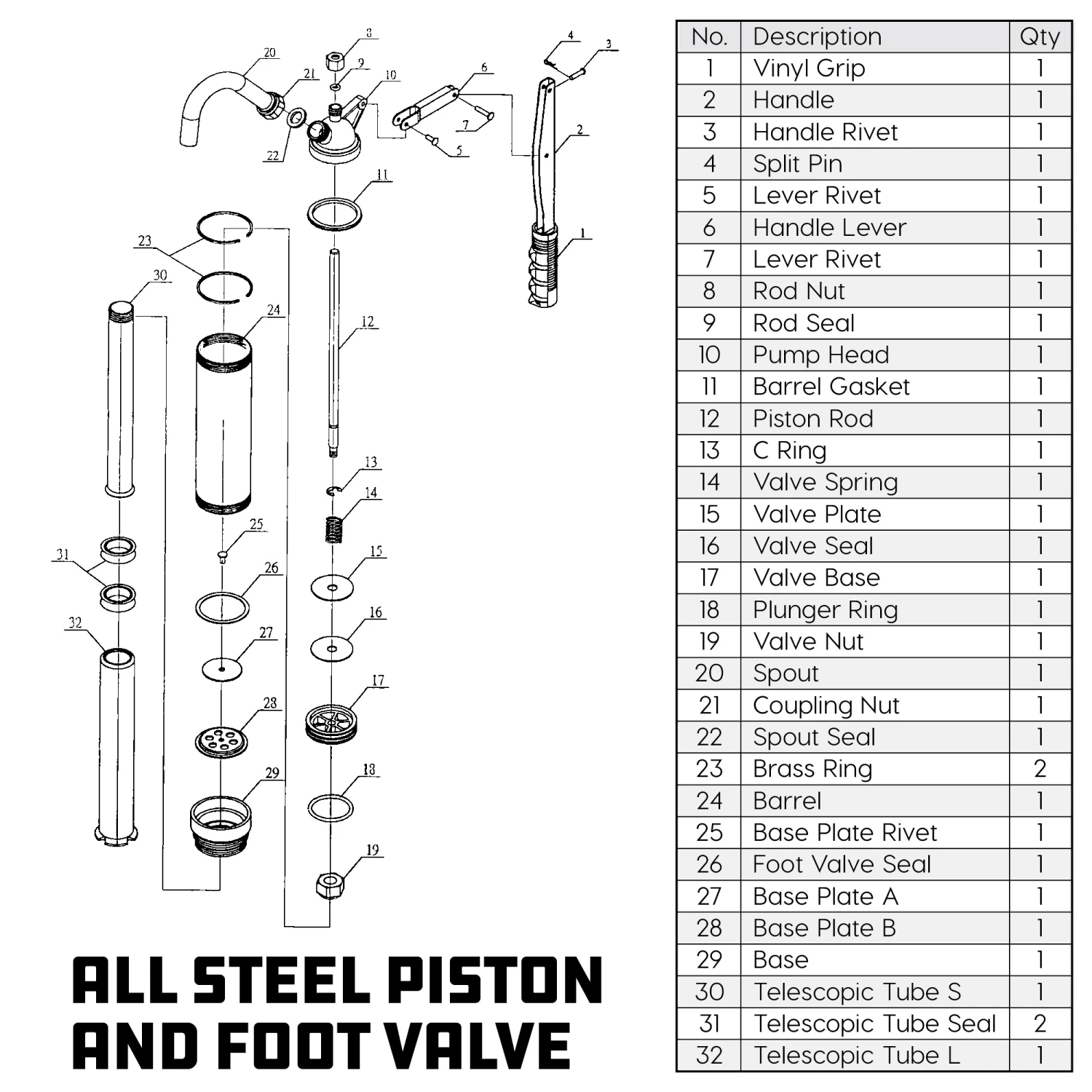 Make dispensing oil-based fluids faster and easier with the Lever Action Barrel Pump. Motor oil, heating oil, and other light and heavy oils are delivered at 10 fluid ounces per stroke. Features sturdy all steel piston and foot valve, curved metal spout and durable powder-coated finish. Pump fits 30 to 55-gallon barrels and includes 1-1/2″ and 2″ bung adapters. For oil-based fluids ONLY. Not for use with water-based fluids, solvent, acids or antifreeze.