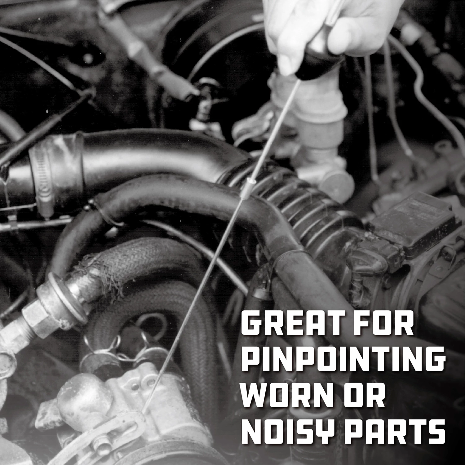 This Powerbuilt Mechanic’s Stethoscope is great for diagnostic engine work and troubleshooting issues. Use this stethoscope to easily identify damaged valvetrains, bearings, transmissions gears, piston slaps, gaskets, and more. Includes two probes to pinpoint the source of a noise coming from faulty parts. Every package comes with professionally written usage instructions that take you step by step through proper tool usage.