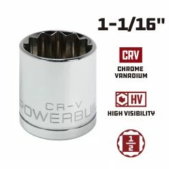 Powerbuilt 1/2 Inch Drive x 1-1/16 Inch 12 Point Shallow Socket – 642008