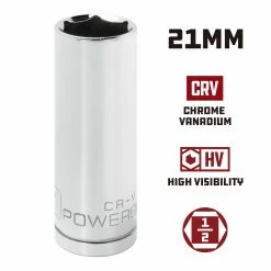 Powerbuilt 1/2 Inch Drive x 21 MM 6 Point Deep Socket – 640836