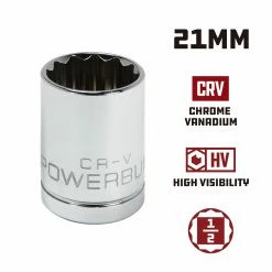 Powerbuilt 1/2 Inch Drive x 21 MM 12 Point Shallow Socket – 642019