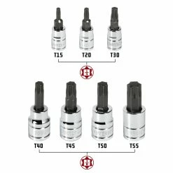 Powerbuilt 7 Pc Torx Bit Socket Set, Star Bit, 1/4″ and 3/8″ Drive – 648414
