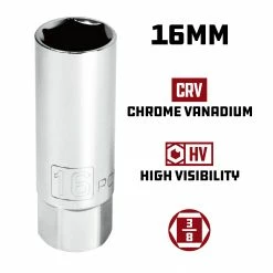 Powerbuilt 3/8-Inch Drive Metric Spark Plug Socket 16mm – 643008