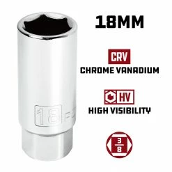 Powerbuilt 3/8-Inch Drive Metric Spark Plug Socket 18mm – 643009