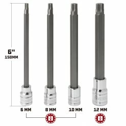 Powerbuilt 4 Pc. Torx Bit Socket Set, Star Bits, 3/8″ Drive – 640316